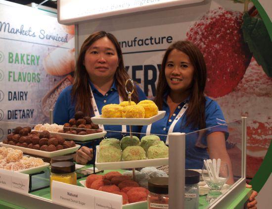 On the topic of flavours, the team at Embassy Flavours from Brampton, Ont., was featuring colourful flavoured donut sugar. The challenge, noted QA manager, Tina Chang, is creating the brilliant colour to match the flavour.