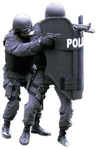 Baker Batshield allows a tactical officer to aim and operate a long-gun or handgun, with both hands, while using their shield. The lightweight shield automatically narrows or widens for use on aircraft, buses, trains, boats, and other confined areas.