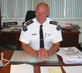 “I love what I do and am extremely proud of my staff and the work that they do,” says Chief Superintendent W. Fraser MacRae, who has been at the helm since June 2004. “I enjoy helping people and when I meet with my new officers, I wish them the same opportunities that I had and that they face it with the same enthusiasm.”