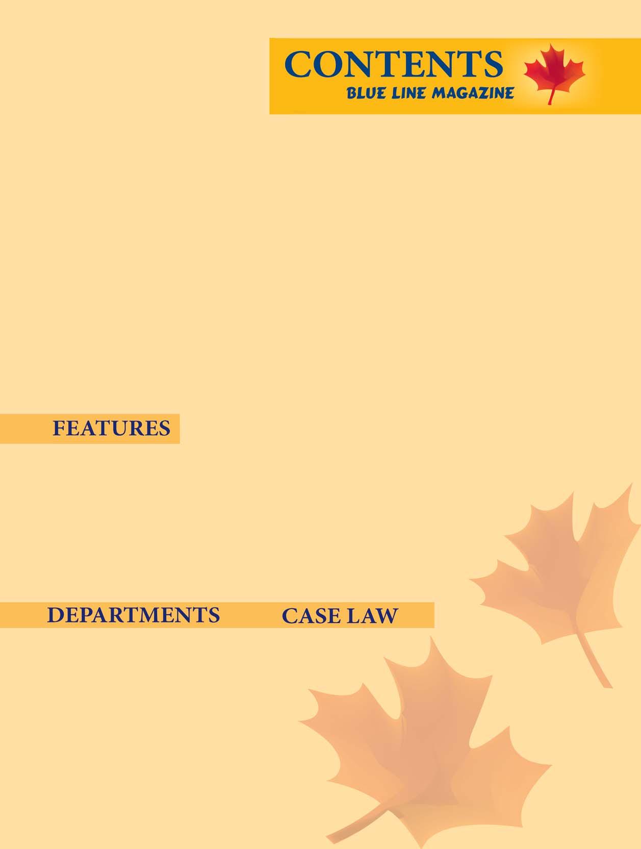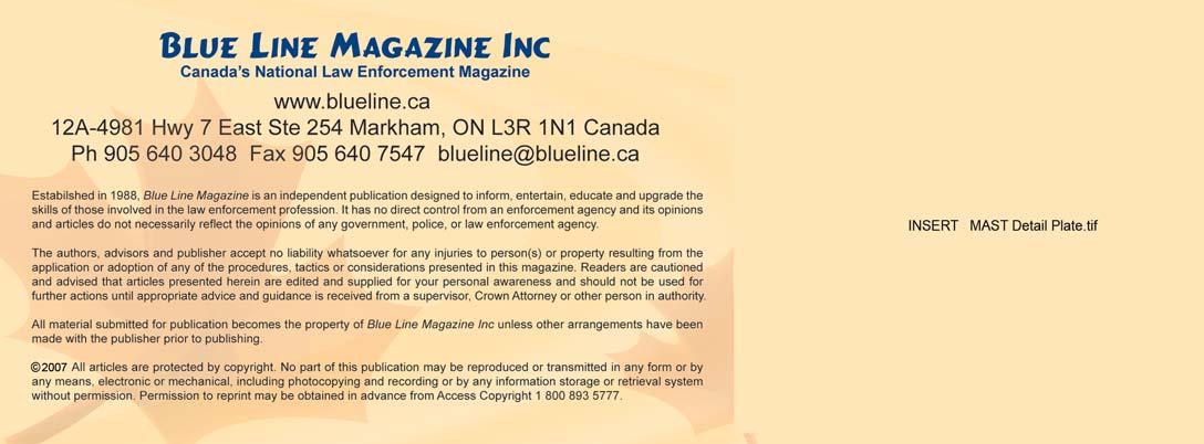This one-day course by instructor Wayne Vanderlann is an invaluable resource for the police and government investigator. You will learn the proper way to draft a warrant the first time and how to cover the various hurdles that have been placed in your way. This course is offered during the Blue Line Trade Show. See course information page 41. Register at www.blueline.ca or phone 905-640-3048.