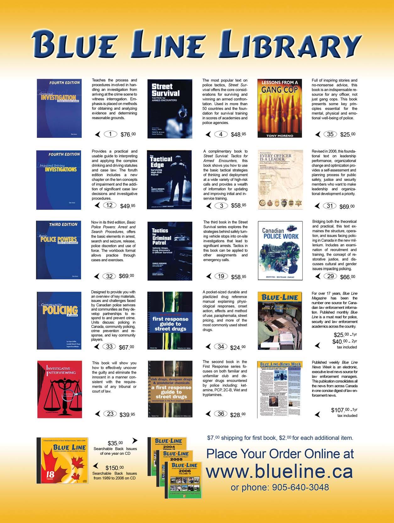 The 11th annual trade show for law enforcement personnel from across Canada to view and purchase a wide spectrum of products and services in the law enforcement industry. Admission is free by pre-registration. Four training courses are also offered and require separate pre-registration and fee. See course titles below. Registration and information is at www.blueline.ca .