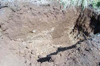 The single graves are difficult to distinguish from the surrounding pasture, while the control site can no longer be distinguished at 16 months. We attribute this inhibition of vegetation regeneration to an initial soil toxicity which gradually subsides over time. Statheropoulos et al. (2005; J. of Forensic Sciences) showed that decomposition of a human body produces more than 100 compounds, including several (e.g. dimethyl disulfide, toluene) in relatively high concentrations. These may inhibit micorrhizae and soil microbes, both of which would delay regeneration.