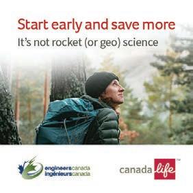 The Engineers Canada- sponsored Financial Security Program is exclusive to engineers and geoscientists, as well as their families, across Canada. Group savings products give you a real advantage: you’ll pay typically lower fees compared to retail investment options, and this can add up to more future savings. Plus, you get free investment guidance when you join. For more information please visit: welcome.canadalife.com/engineers-canada