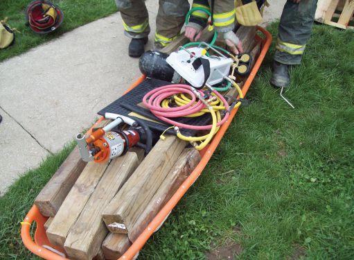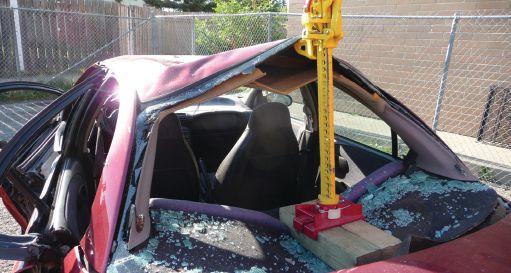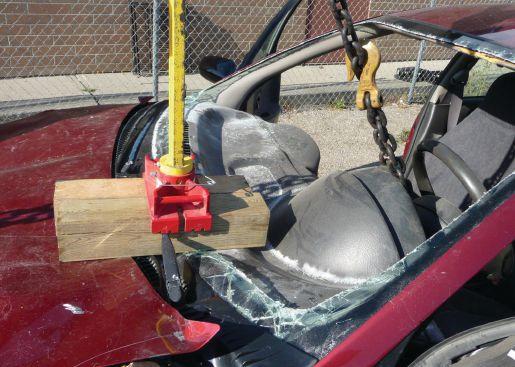 Equipment required: First Responder Jack; 5/8 of an inch (15 millimetre)-rated chain; two 18 to 24-inch (45- to 60-centimetre) 4x4 blocks of standard cribbing; a glass removal tool.