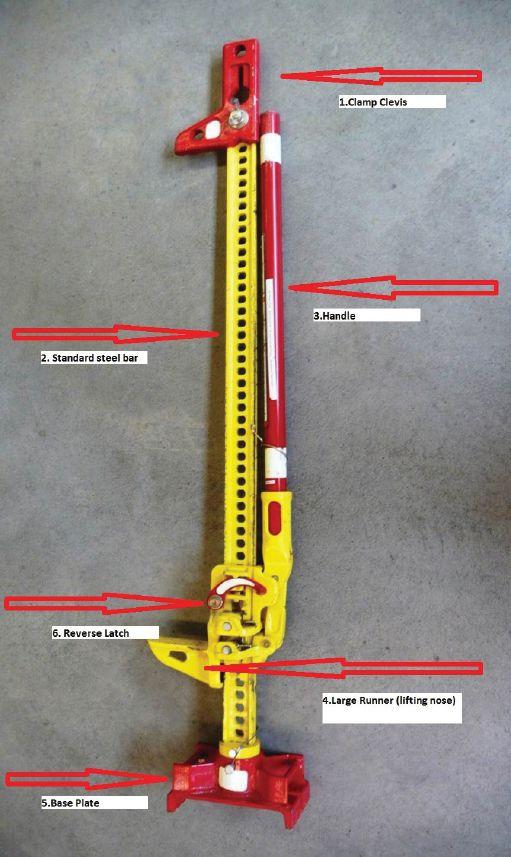 In the August 2011 Fire Fighting in Canada I talked about a new hand tool that had just entered the market called the First Responder Jack (FRJ) by Hi-Lift. This interesting design is a derivative of a common industrial tool known as the Hi-Lift Jack. I’ll give you a bit of history from the company that manufactures the jack, called the Bloomfield Manufacturing Company. Bloomfield started in 1895 in Indiana by Philip John Harrah and is still owned and operated by fourth-generation family members. The device was first called the Handyman’s Jack and a few years later was renamed the Hi-Lift Jack. The Jack’s basic design and function has not changed: it can lift, winch, clamp, pull and push, making it an extremely versatile all-in-one tool and the company’s best-selling product. The FRJ, however, has some modifications that pertain directly to vehicle-rescue situations. Photo 1 shows the tool’s operating parts.