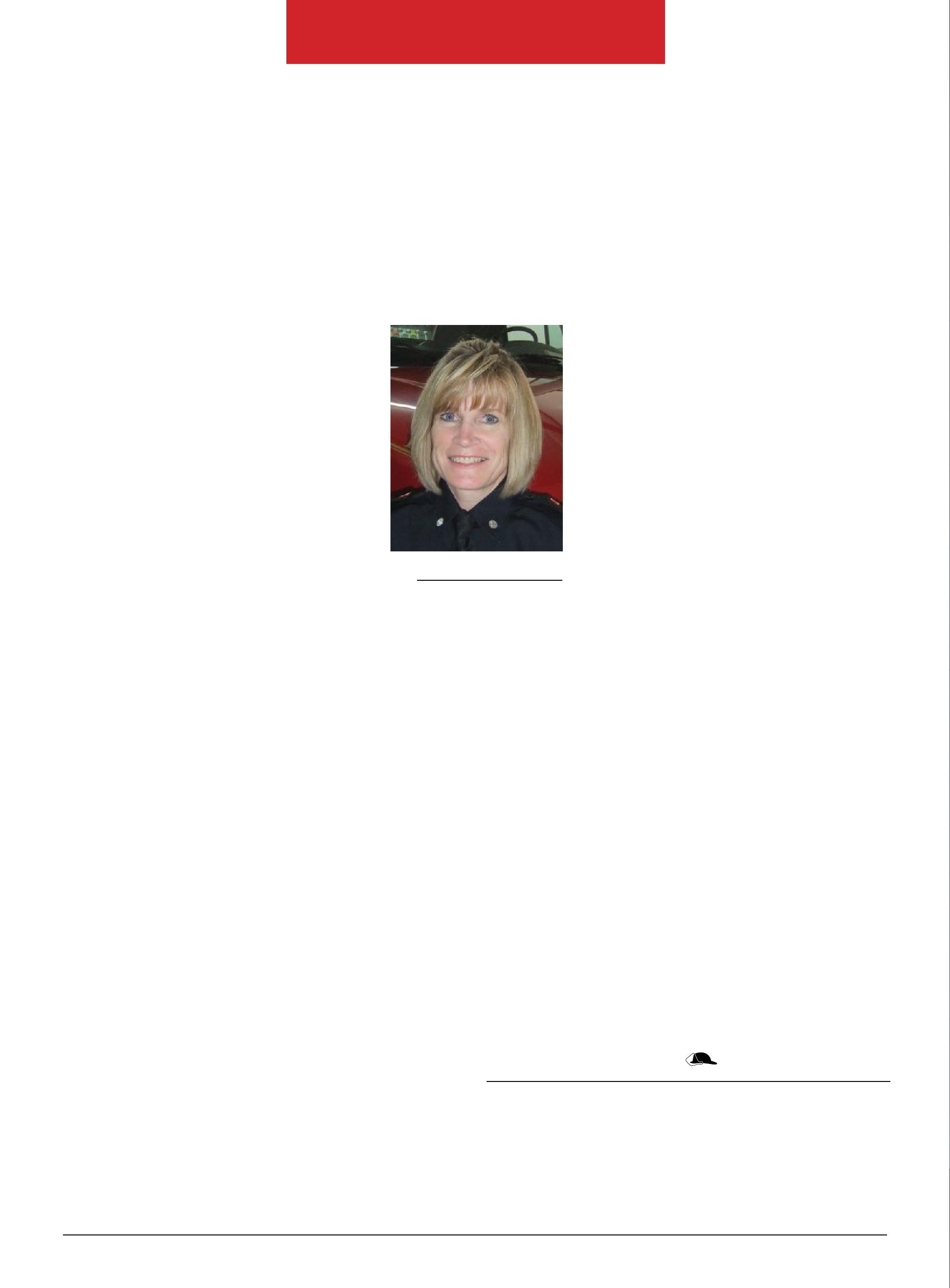 In large urban settings and small country towns, all of us are aware that we never truly leave our work at the end of a shift. Often I find myself envious of nine-to-five workers who can simply shut down the computer, lock the office door and forget work until they return the next morning. It may surprise some folks to know that when we are off duty we still carry on our dayto-day business as firefighters or paramedics. For example, I remember moving into a new house a few years ago and a neighbour came over to greet me. “Oh, great!” she said, “I feel so much safer knowing that we have a firefighter next door.” I’m sure that this scenario is familiar to many of you and illustrates my point, that we are firefighters 24/7, whether we like it or not. My neighbour assumed that if an emergency occurred at her home, I would be there to help. It is evident that our profession is held to a higher standard than most; we are expected to be healthy, act with safety in mind and set good examples. Many people do not realize that, even out of uniform, we are to some extent always on duty. Interestingly, just weeks after moving into that new home, my doorbell rang early one morning and there stood my neighbor obviously in distress; her mother had suffered a medical emergency and her first reaction was to go find the firefighter.