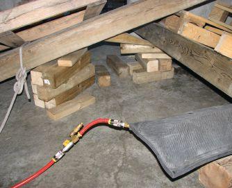 Photo 3: Place the jack base plate on the blocks, slide the slacked chain over the large runner (the lifting nose) and take up any slack in the chain prior to the lift.