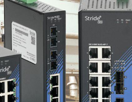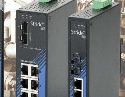 The new STRIDE SE3 series of unmanaged Ethernet switches provides low-cost, reliable Ethernet networking solutions for industrial applications. Built with a rugged IP30 metal housing, this series o ers: