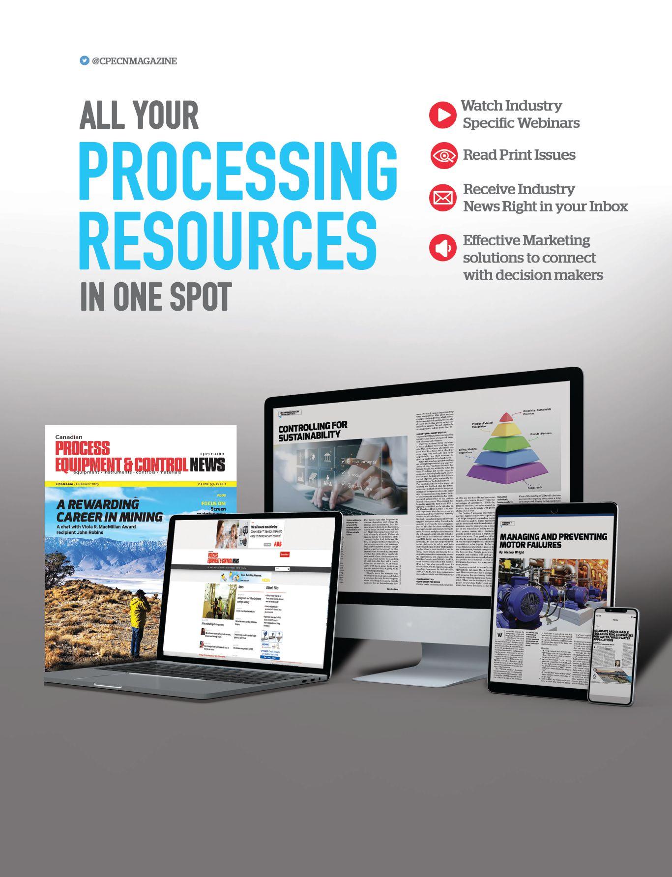 © All materials in this publication are copyright protected and the property of Annex Business Media., the publishers of Canadian Process Equipment & Control News magazine.