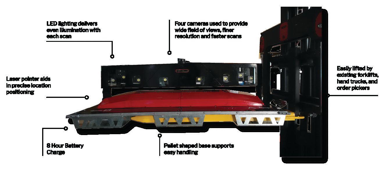 Inventory scanning happens as fast at the material handling equipment lifts and lowers the industrial strength vision system, and this process is repeated along each aisle.