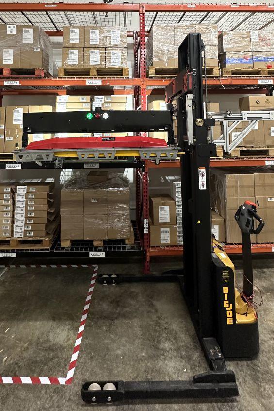 The system is then raised by the material handling equipment and automatically begins scanning inventory from the floor to the highest storage bay, and every rack location between.