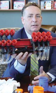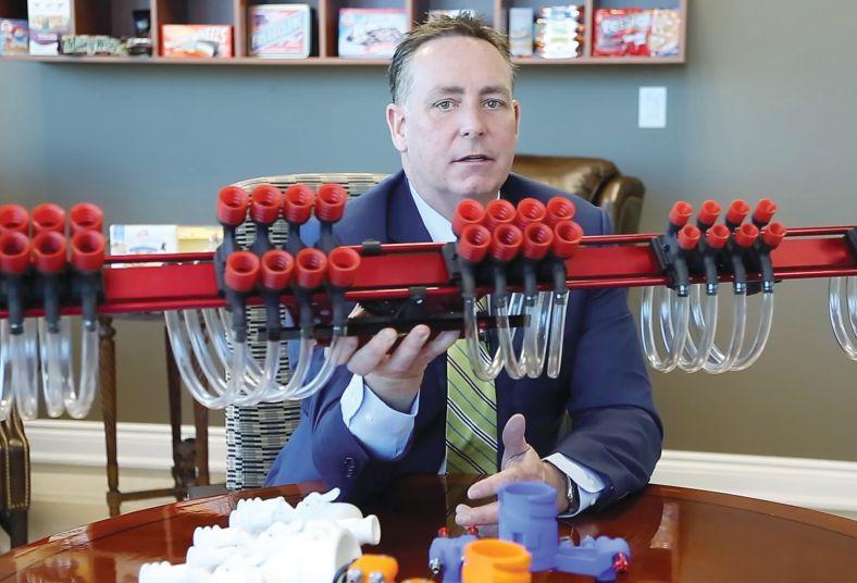 Chris Follows shows off some of the critical system components produced using advanced 3D printing technology, which Follows says allows the company the flexibility to make on-spec parts for its entire machinery range with exceptionally fast turnaround.