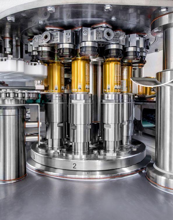 In the product area the filling valves on the KHS can fillers are thus equipped with PTFE (Teflon) expansion joints in place of conventional seals.