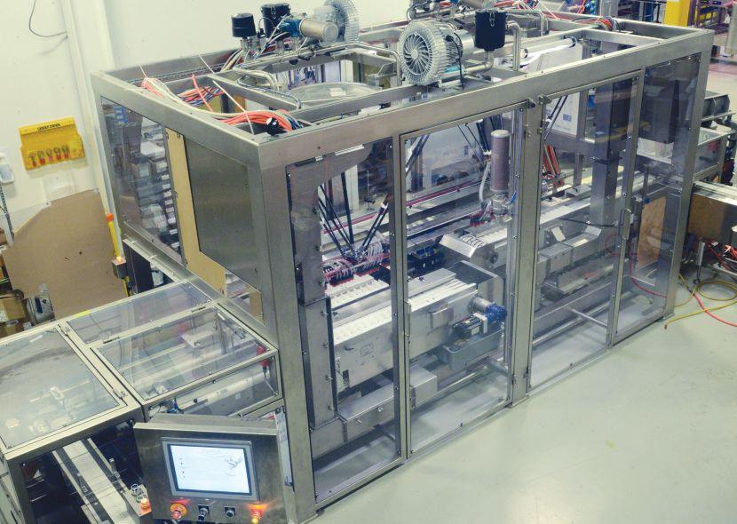 “Sanitation is everything,” Follows states, citing the company’s new Propack machine— incorporating four FlexPicker robots—featuring stainless-steel frames and smooth contoured surfaces.