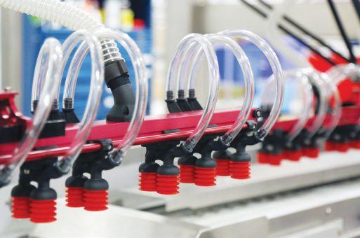 A close-up of suction vacuum cups at the end-of-arm tooling of the IRB 360 Flexpicker robots.