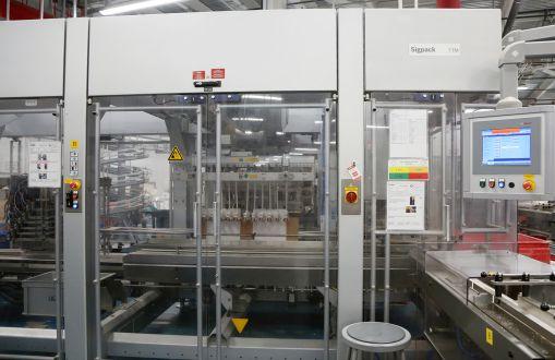 The Sigpack TTM toploader design incorporates a Nordson hot-melt applicator for inline gluing of the pre-loaded cracker boxes.