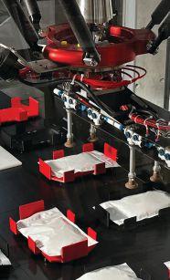 The new iFTS solution for R.A. Jones utilizes 3D-printed red shuttles and magnetic levitation technology to offer virtually unlimited flexibility in pick-andplace cartoning applications.