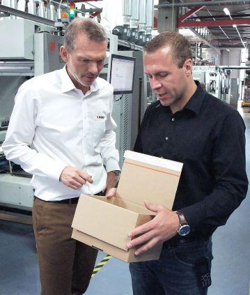 Sebastian Würth (right) and Michael Linden from Bobst Meerbusch are pleased with the accuracy and productivity of the