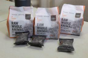 Produced in three innovative flavor varieties—including rabbit, chicken-and-duck and turkey-and—the Raw Whole Animal Diet for Cats line medallions are packaged in flowpacks, which are then packed in groups of seven inside recyclable multi-pack freezer pouches containing a full delicious serving of raw meat for each day of the week.