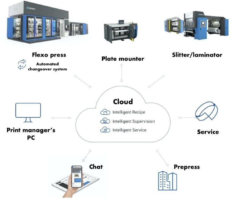 Sophisticated flexo presses have found a way to use the Cloud to share recipe data between those involved with each job—both people and equipment.