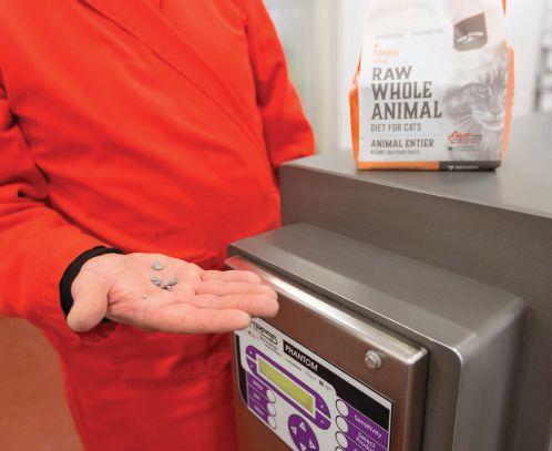 “When everything is running perfectly, we can run the whole production run for the cat food medallions with just three people,” Stovra says.