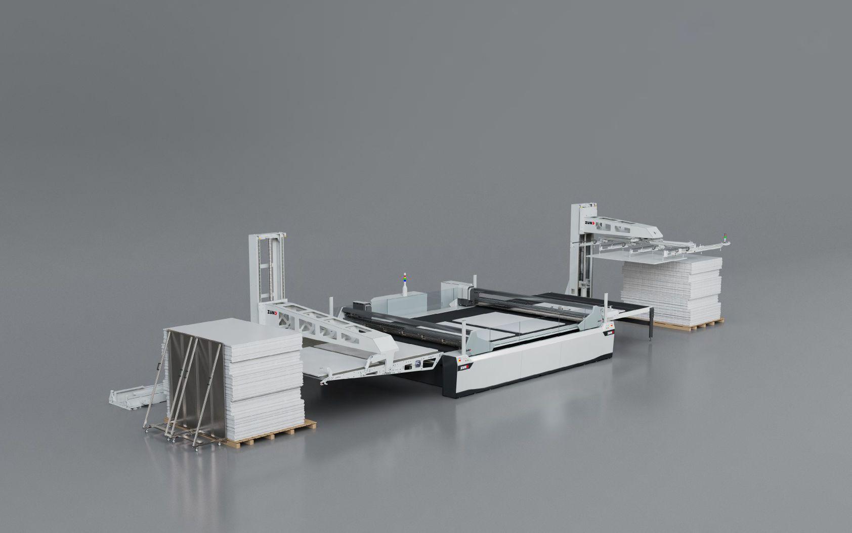 The BOBST Cartonpack II is a fully automated packing station that can pack up to 150,000 sheets of printed cartonboard per hour inside shipping boxes in various stack patterns.