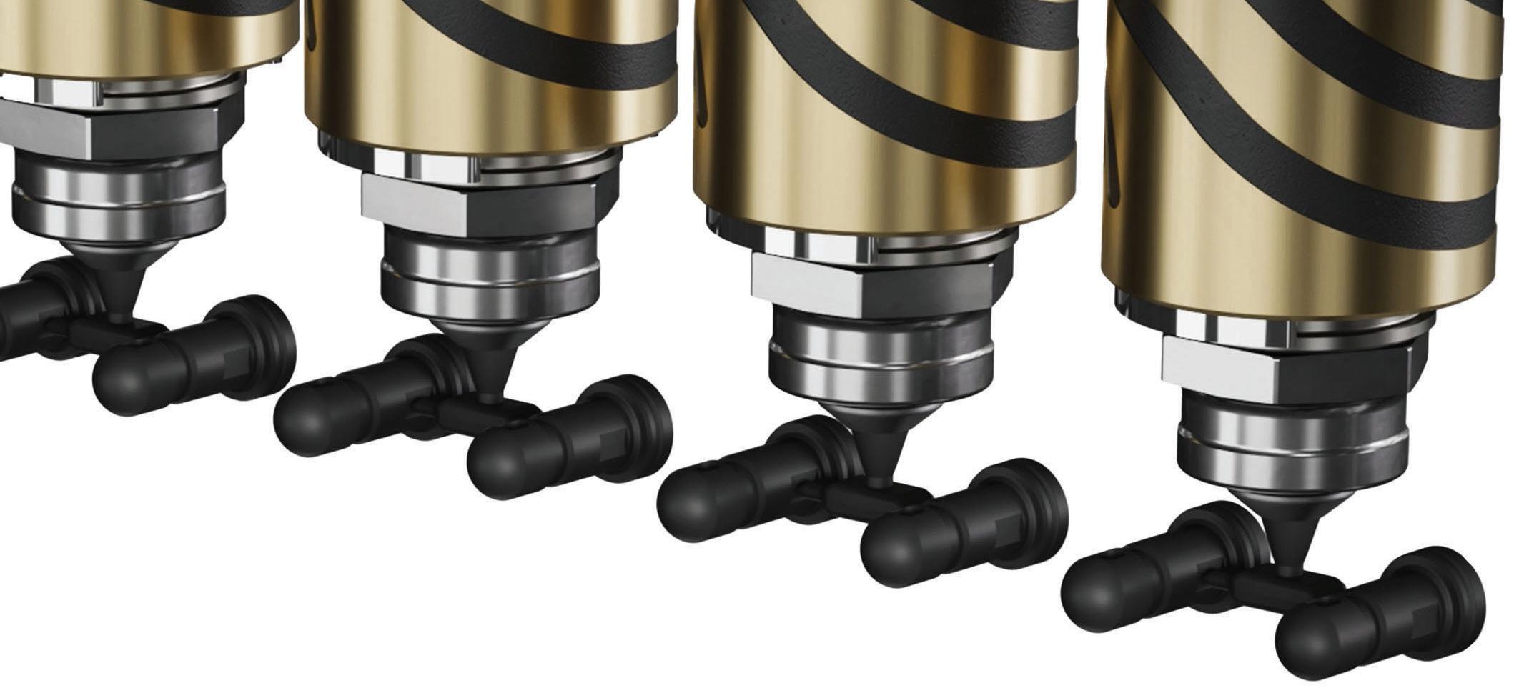 the box – to reduce installation time, eliminate extra equipment such as a temperature controller, and improve safety conditions during installation and removal. Also, the Dura+ (F) nozzles are now available in customizable lengths up to 1,000 mm and feature more compact nozzle bore cut-outs. And Dura+ actuators now have a more compact height and cut-out than previous actuator designs and have a quick release feature that allows it to be detached from the hot runner system, without having to remove the valve pin with it, to make servicing the actuator quicker and easier.