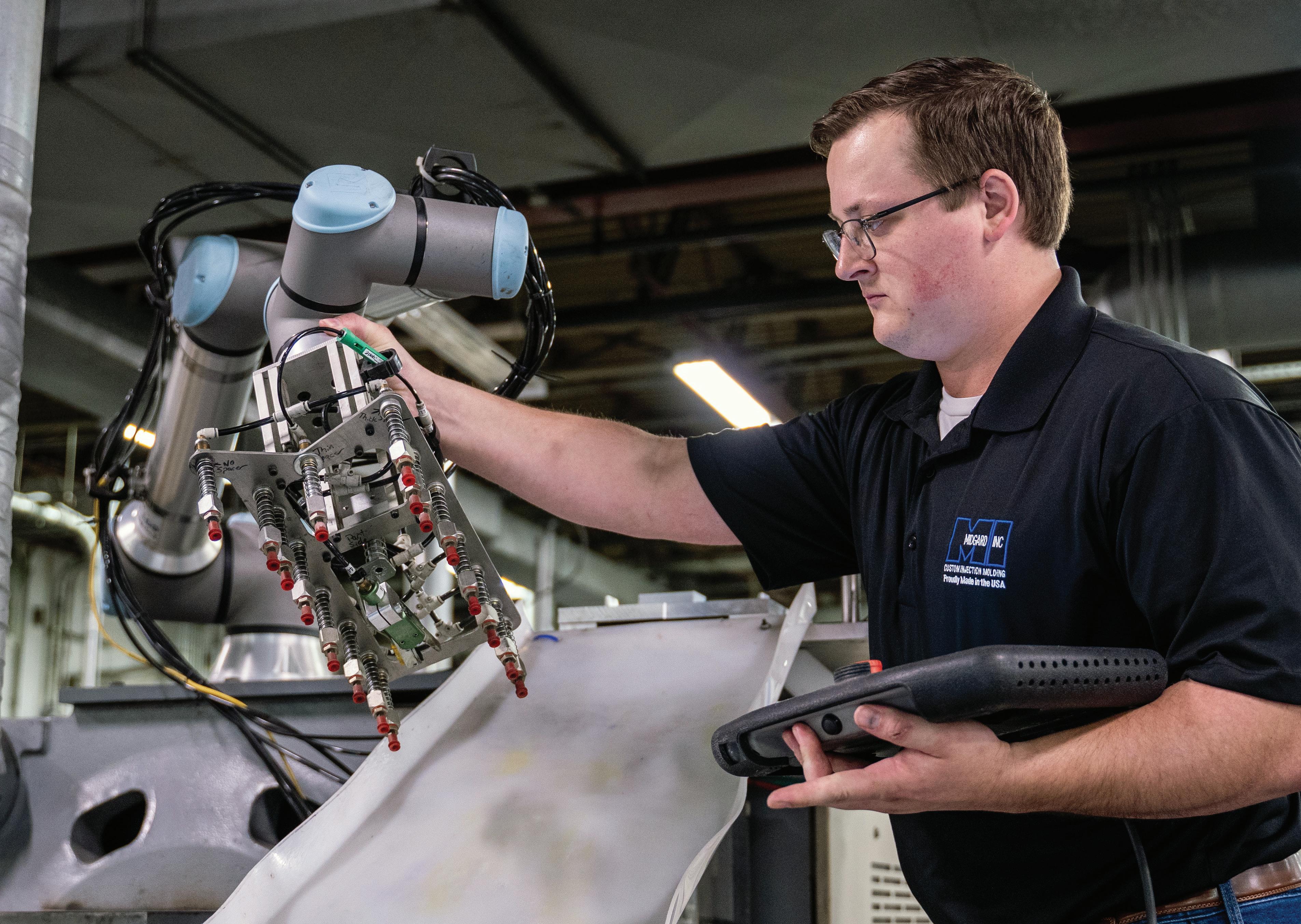 For decades, automation has helped plastics companies gain efficiencies in their production processes. In the newest development, inexpensive collaborative robots are transforming injection molding by automating tedious tasks such as machine tending, part placement, and quality checks.