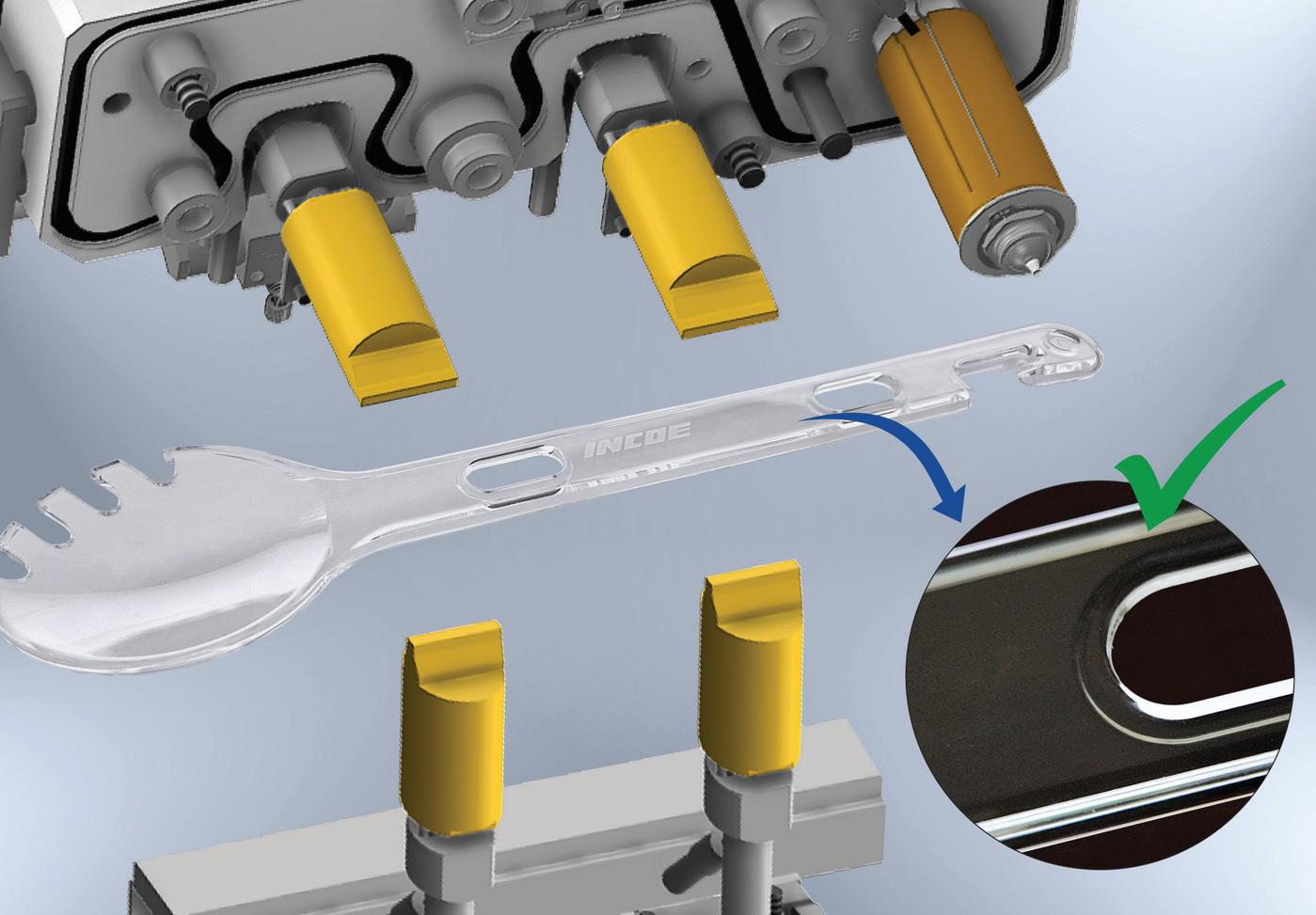 Incoe used the K show to showcase how its compact Heat-Inject system makes weld lines on molded parts –which can’t be avoided altogether, as they occur naturally due to the flow of the melt in the cavity – far less visible. Using localized variothermal temperature control, the company said, the technology delivers precise heat pulses that eliminate surface defects, with minimal energy input and without disturbing the overall molding process. “A heated stamp is briefly pressed against the wall of the cavity from behind and transfers a small amount of heat,” they said. “This amount of heat is sufficient to briefly raise the temperature of the mold surface to a level that prevents the formation of a weld line notch. At the same time, the amount of heat introduced is so small that it’s quickly dissipated via the mold plate without disturbing the heat
