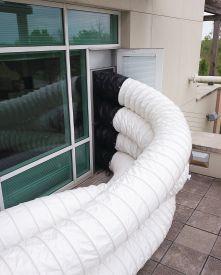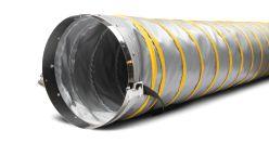 durable wear strip that provides another layer of protection no matter how much it’s pulled and dragged across the jobsite. The wire helix design of the Arctic Helix HT provides a strong structure, allowing consistent air flow, and can be used in horizontal and vertical applications. The Arctic Helix HT is available with a pin-lock collar on one end and a belted-cuff collar on the other. It is a bi-directional duct, so it can be connected from either end. The Artic Helix HT has a 260 C temperature rating at the heat source and it passes FR testing to NFPA-701 and CAN/ULC-S109. Despite its heavy-duty construction, the Arctic Helix HT has integrated compression straps that assist with carrying and minimize storage space on rental shelves.