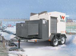 E3000 heater with a six-kilowatt generator features a standard 1,000hour service interval and delivers up to 140 hours of run time. With accessories this heater has a frost capacity up to 17,997 square feet or can provide 525,000 square feet of dry heat at 83 percent efficiency. Ideal for cost-effectively thawing and maintaining soil temperature during cold weather construction, the E3000 has positive displacement pumps that provide steady flow and