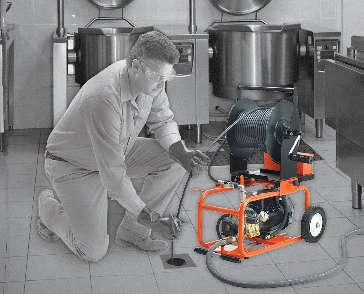 cleaners with the rugged reliability of rental machines. Clears tough root obstructions in 3” to 10” lines up to 100 feet long. With automatic feed and stair climbers.