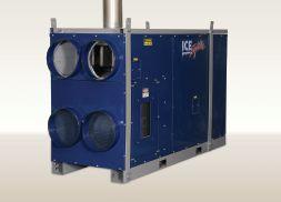 PLC operation for easy troubleshooting and simplified maintenance. Options include a status beacon indicator, and a 175-gallon oil tank for the diesel models. The backward incline fan produces up to 8,000 CFM and five inches of static pressure, with multiple different voltage options. The fan is controlled by a variable speed drive with two selectable fan speeds and reduced start-up requirements. Standard duct configuration is a two-by-16-inch inlet and outlet on the same side for easier connections on the jobsite. The IHS1000 is available with a complete lifting and stacking frame and forklift pockets. Approved by CSA.