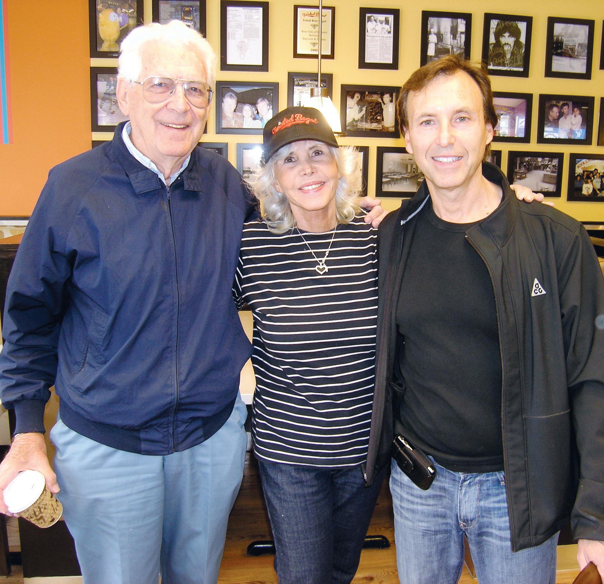 Wayne Fromm, right, with his parents Moe Closs and Miki Fromm-Closs at Twisted Bagel’s grand opening on Nov. 1.
