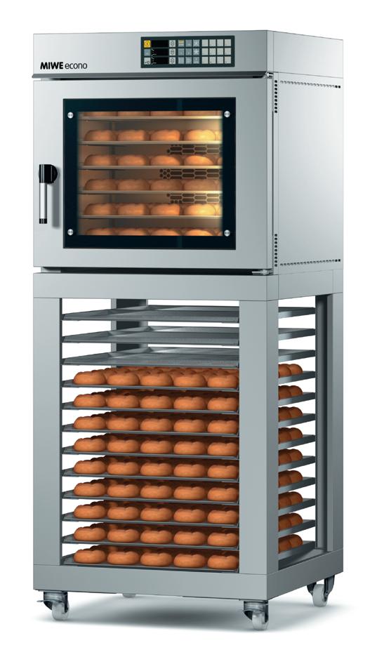 No contradiction – just the MIWE econo: • Holds up to 10 trays • Double-layered large glass viewing window with halogen lights • Built-in steam system capable of pulsing or full steam cycle • 4 speed reversing fan in the easy-to-clean baking chamber