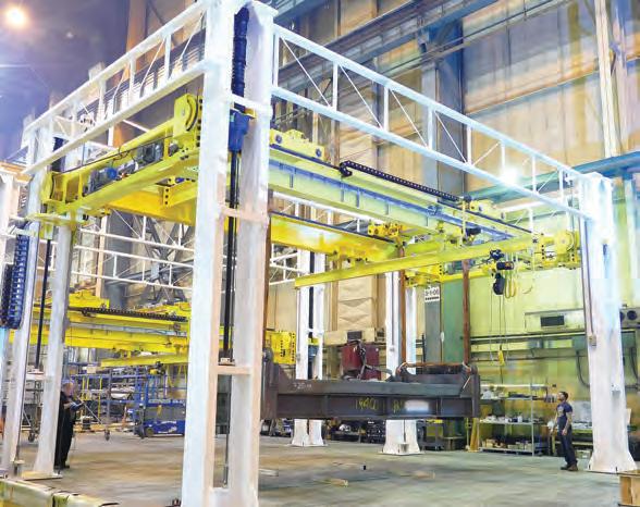 custom personnel lifts, two engine lift systems, eight large capacity engine transporters, four fixed position work platforms and a variety of specialized fixtures and tooling. The lift/rollover stations and engine lift systems were rated for a capacity from 15 to 100 tons and two of the engine transporters have a carrying capacity of 50 tons.