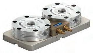 SCHUNK rolled out its VERO-S NSL mini 100-25 series miniature clamping stations. The 1-, 2- and 4-way clamping stations feature a revised drive that allows each clamping module to achieve a pull-down force of 6,000N due to a patented dual stroke system and activated turbo function. Depending on the used thread, the holding force amounts to 15,000N (M6) or 25,000N (M8). With dimensions of 199mm x 199mm x 40mm, the 4-way clamping station achieves pulldown forces of 24,000N and holding forces of 60,000N and 100,000N, respectively. Since the rigidity has also been increased,