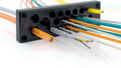 functions through a single cable. It is suitable for applications up to a bending radius of 10xD across all industries, including machine tool, automotive and Intralogistics. igus has tested CF280.UL.H inside an energy chain with a 7x bend radius for up to 8 million cycles without mechanical failure or degradation of signal. The cable works reliably, even in temperatures of -13°F to +176°F. A braided shield with a high covering ensures EMI protection over the life of the cable. Depending on the manufacturer’s specification, the new hybrid line has a black or orange oil-resistant polyurethane outer jacket, and is coolant-resistant and flameretardant.