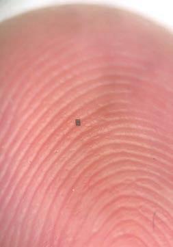 A microrobot, fully integrated with sensors and a computer, small enough to balance on the ridge of a fingerprint.