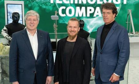 From left: Georg F. W. Schaeffler, family shareholder of Schaeffler AG; Artem Sokolov, CEO and founder of Humanoid; and Klaus Rosenfeld, CEO of Schaeffler AG, sealing the technology partnership.