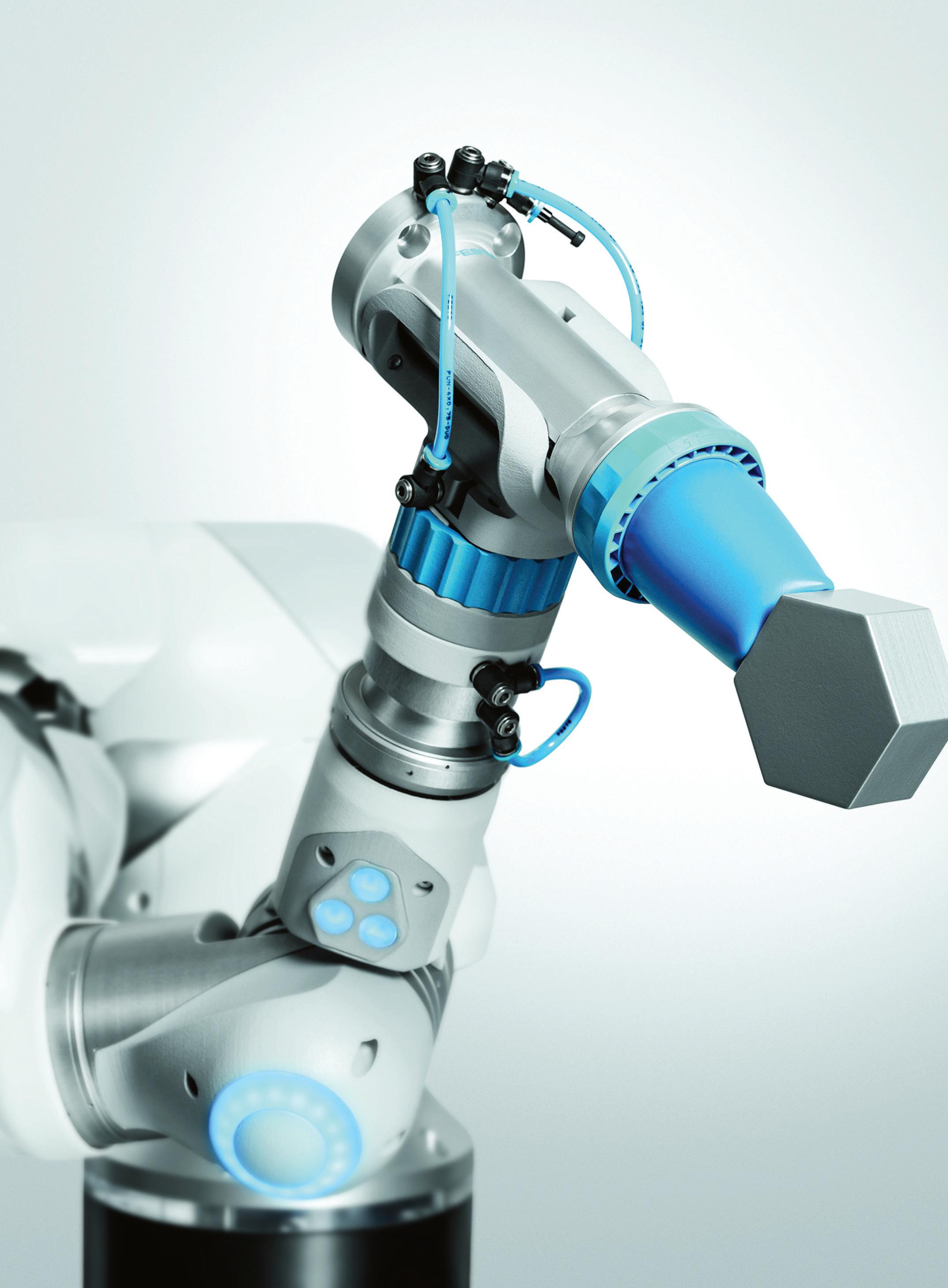 traditional fluid power with automation. Since we can’t have too many people within a squared circle anymore, we’re seeing an increasing adoption of cobots to help with operator interface and machine tending. With that adoption comes increased demand for complementary fluid power products such as end-of-arm tooling and pick-and-place units.
