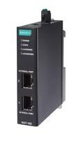 Learning Lock that automatically acquires the IP and MAC address of the locally connected devices and binds them to a whitelist. Operable in temperature ranges from -40 up to 75°C, the NAT-102 is rated for installation in ATEX and Class I, Division 2 locations, as well as EN 50121-4 for railway applications. It is also NEMA TS2 compliant. The NAT-102 features two RJ4510/100BaseT(X) Ethernet ports that can be set for port access, transmission speed, flow control and port type. www.moxa.com