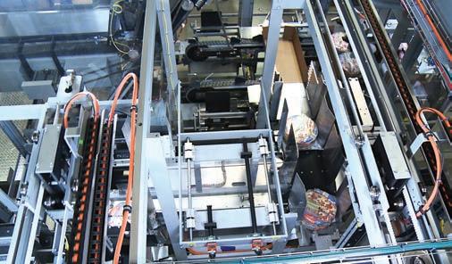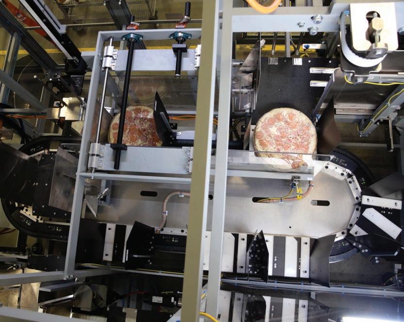 regardless of their weight, shape and orientation,” Grinager said. “That’s the beauty of this machine – it takes a stack of 15 shrinkwrapped circular pizzas and can quickly adapt to an infeed of pizzas already in square packaging – all with minimal changeovers.”