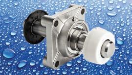meet IP69K requirements, KML developed the PolyGuard IP69K Sealing System to protect the bearings from the ingress of dust, water and bacteria especially during high-pressure, high-temperature food equipment washdowns. Fully-enclosed ends and throughshafts coupled with a variety of back seals and V-rings protect against surface corrosion and chemical damage while the hermetically-sealed bearing are enclosed to eliminate harborage issues.