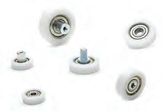 hardened roller bearing steel. The bearing also incorporates permanent lubrication and a typical 2Z seal to protect against dust and dirt. The rollers can fasten using a typical socket cap, shoulder screws or through a permanently riveted bearing pin, designed either with male or female thread. The smallest roller option can accept dynamic radial loads of up to 400 newtons, while the largest roller rates for loads as high as 1,500 newtons. All rollers are designed for lifetime performance of 656,167ft (200,000 meters) and speeds of 1.3 feet per second (0.4 meters per second). www.jwwinco.ca