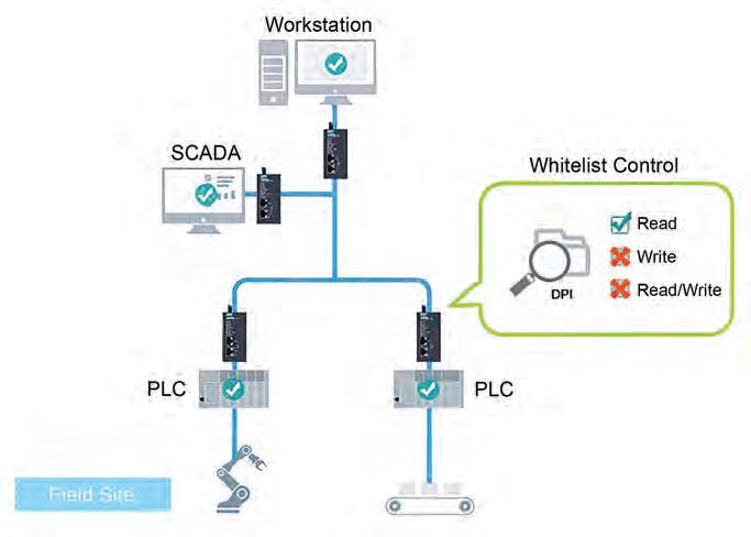 Deploying whitelist control powered by deep packet inspection can prevent hackers from injecting unauthorized commands.