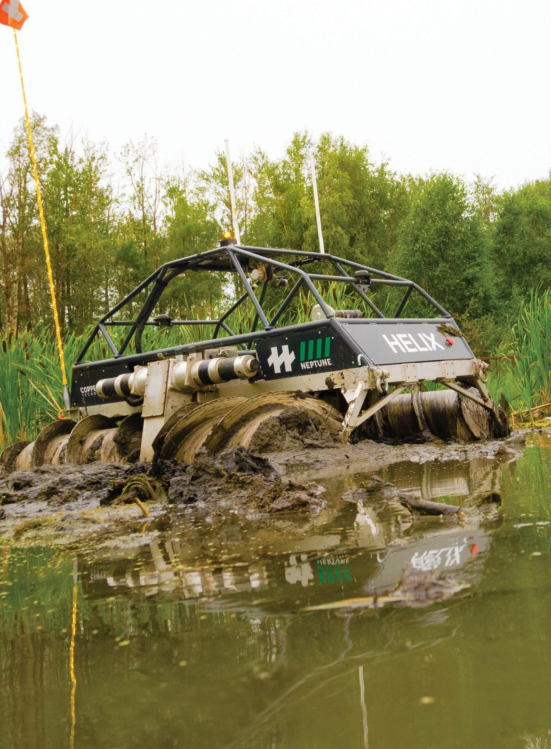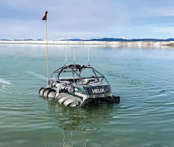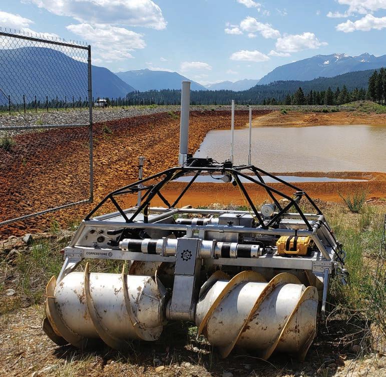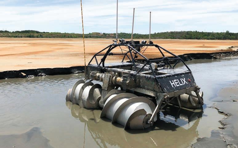 Copperstone’s amphibious Helix robot mitigates risks of monitoring tailings ponds.
