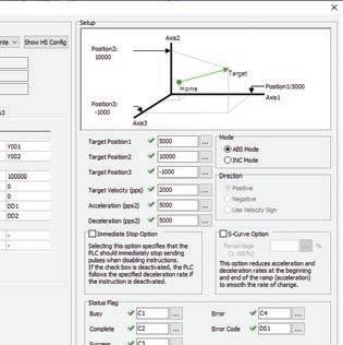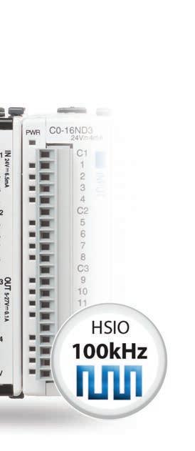 CLICK PLUS PLCs provide control simplicity combined with advanced capabilities including Wi-Fi communication, MQTT support, data logging, and now motion control. Any CLICK PLUS CPU can be con gured as a 3-axis PTO/PWM motion controller with 100kHz high-speed input and outputs (requires DC option slot I/O module placed in slot 0 of the CPU). With the easy-to-use con guration GUI built into the FREE software and the three new motion instructions (Velocity Move, Position Move and Home), CLICK PLUS makes it’s a cinch to control simple motion applications. FREE SOFTWARE with simple motion pro le setup and 3 new easy-to-use motion instructions: