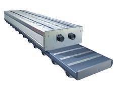 in gantry applications. The line exhibits repeatability accuracy of ±0.05mm with speeds up to 5 meters/ second and acceleration up to 50 meters/second2. It also features a reservoir to lubricate the ball raceway and a drive head that allows a gearbox assembly on either side of the unit. www.rollon.com