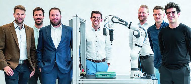 Project FLAIROP’s research team: (from left) Kai Sandmann (Federal Ministry of Economics and Climate Protection), Maximilian Brock (DLR), Daniel Brauchle (Advanced Development Artificial Intelligence, Festo), Florian Leiser (Project Team KIT), Jan Seyler (Head of Advanced Development Analytics and Control, Festo), Sascha Rank (Project Manager KIT), Maximilian Gilles (Project Manager KIT).